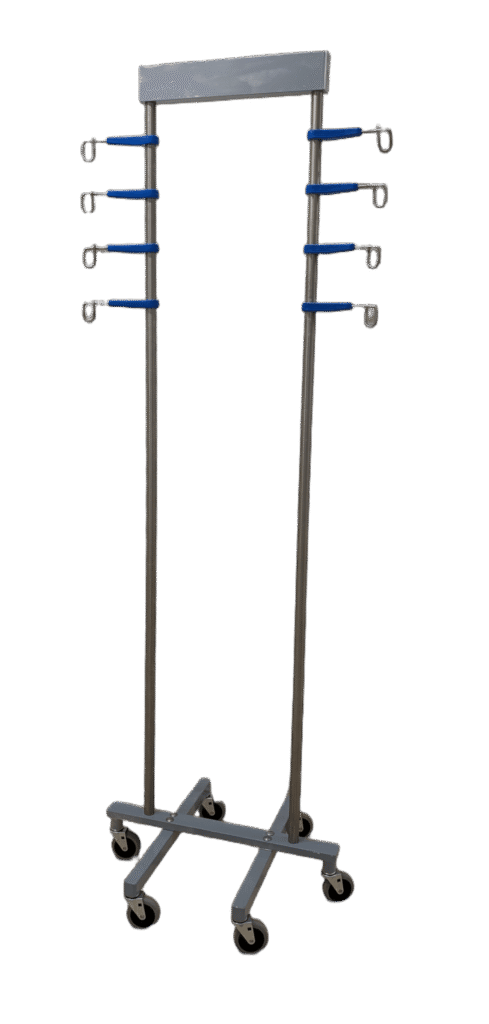This is where the UniPole System comes into its own. With wheels that were designed to travel and which glide across the most unstable of floors, the multiple hooks for hanging things and the tether which allows it to attach to virtually any bed, my team and I are super satisfied beyond expectations that this pole does its business and does it well. The BioMed Group and the UniPole System have been a game changer at my institution! Transferring very sick patients from place to place is safe and pleasant because of this pole.“